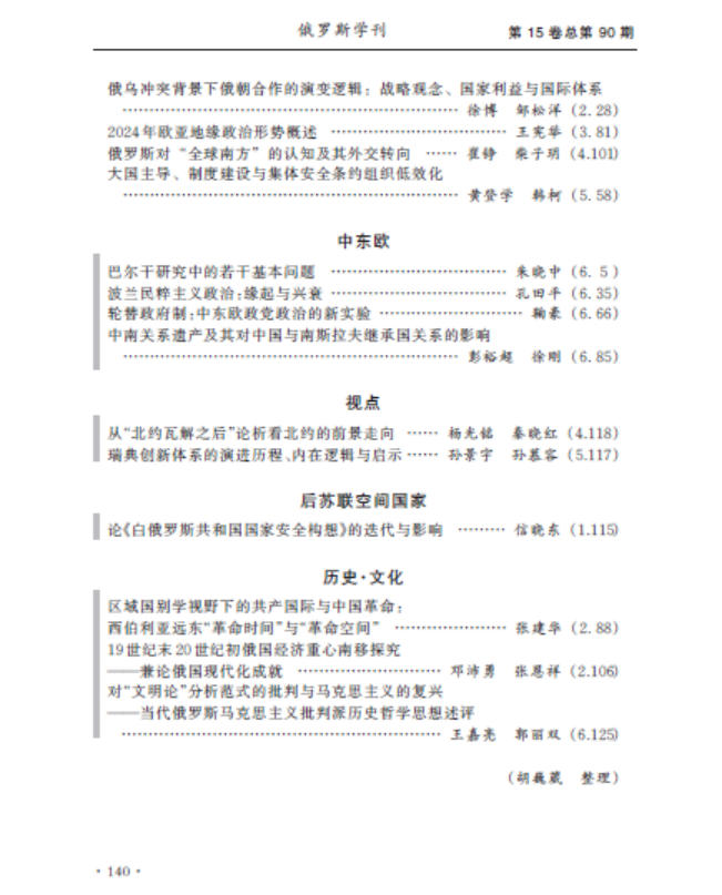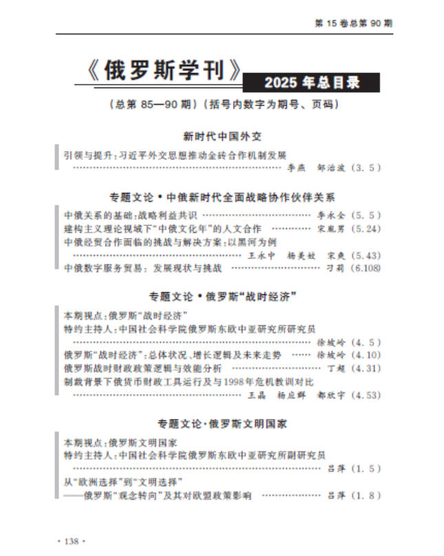《俄罗斯学刊》2025年总目录